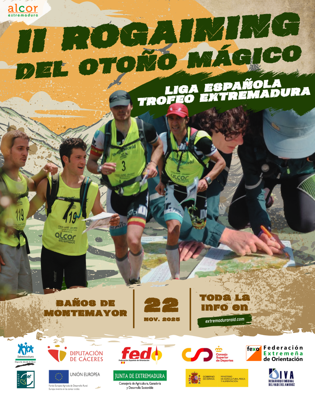 Extremadura acoge la tercera y última prueba de la Liga Española de Rogaining 2025 con el II Rogaining del Otoño Mágico – Trofeo Extremadura, que se celebrará el 22 de noviembre en la localidad cacereña de Baños de Montemayor, un enclave familiar que ya ha sido protagonista de grandes eventos deportivos organizados por el Club Alcor Extremadura.